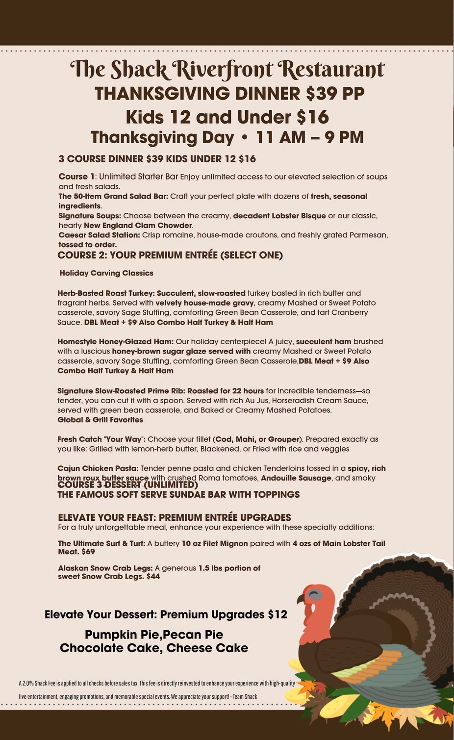 Thanksgiving is just around the corner—make your reservation soon and look forward to a delicious, stress-free holiday on the river! https://t-sml.mtrbio.com/.../the-shack-riverfront.... It's going to be a blast, so we hope to see you there!